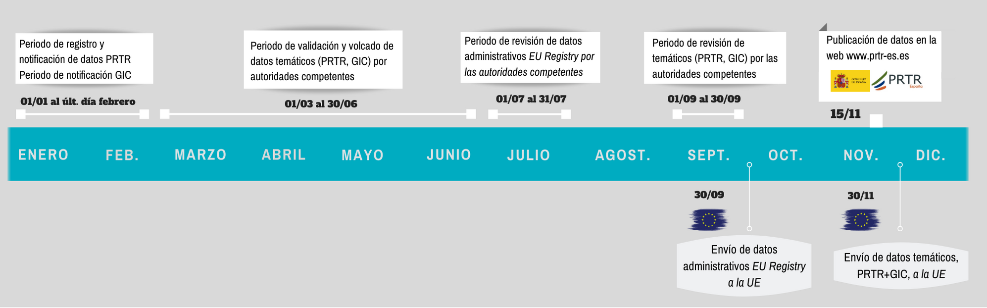 - 30 de noviembre, los estados miembros remiten los datos temáticos PRTR+GIC a la UE (11 meses después del año de referencia).